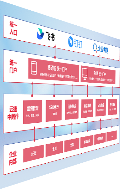 对协作平台提供支持服务,,,支持企业应用与协作平台对接,,,,包含组织同步、、、、消息集成、、、待办集成等。。。支持目前主流的协作平台:钉钉、、、、企微和飞书。。